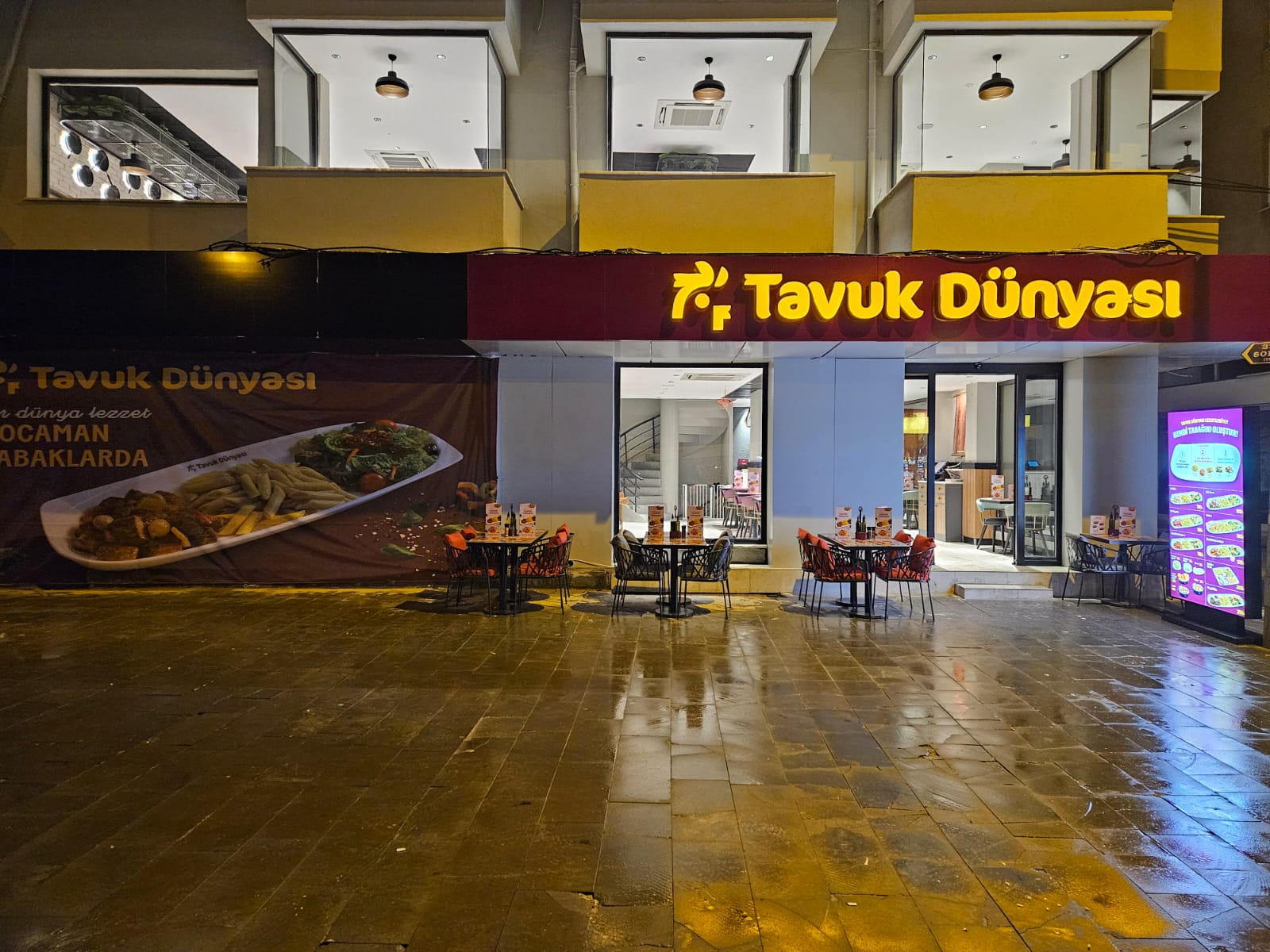 2018 yılında Marmaris’te açtığımız ilk restoranımızın ardından, bugün, Denizli, Kütahya, Uşak, Salihli, İzmir, Aydın ve Nazilli’de restoran deneyiminin en güçlü temsilcilerinden biri olarak, 8 şehirde, 12 lezzet noktasında tüketicilerimiz ile buluşuyoruz. Yemek sektörünün öncü bir dünya markası olma yolunda hızlı ve ciddi adımlar atan Tavuk Dünyası, yine aynı hızla ilerleyen Dürümle ve Terra Pizza restoran markalarının yatırımcısı olmanın haklı gururunu taşıyoruz.